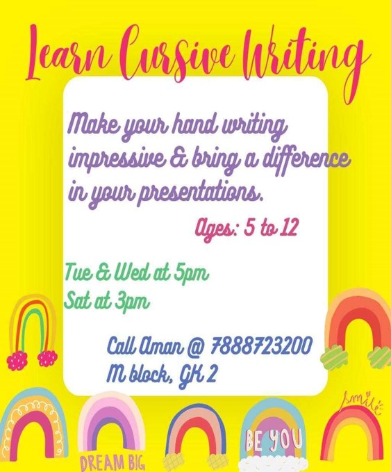 Cursive Writing Classes at Greater Kailash 2 (South Delhi) by Aman