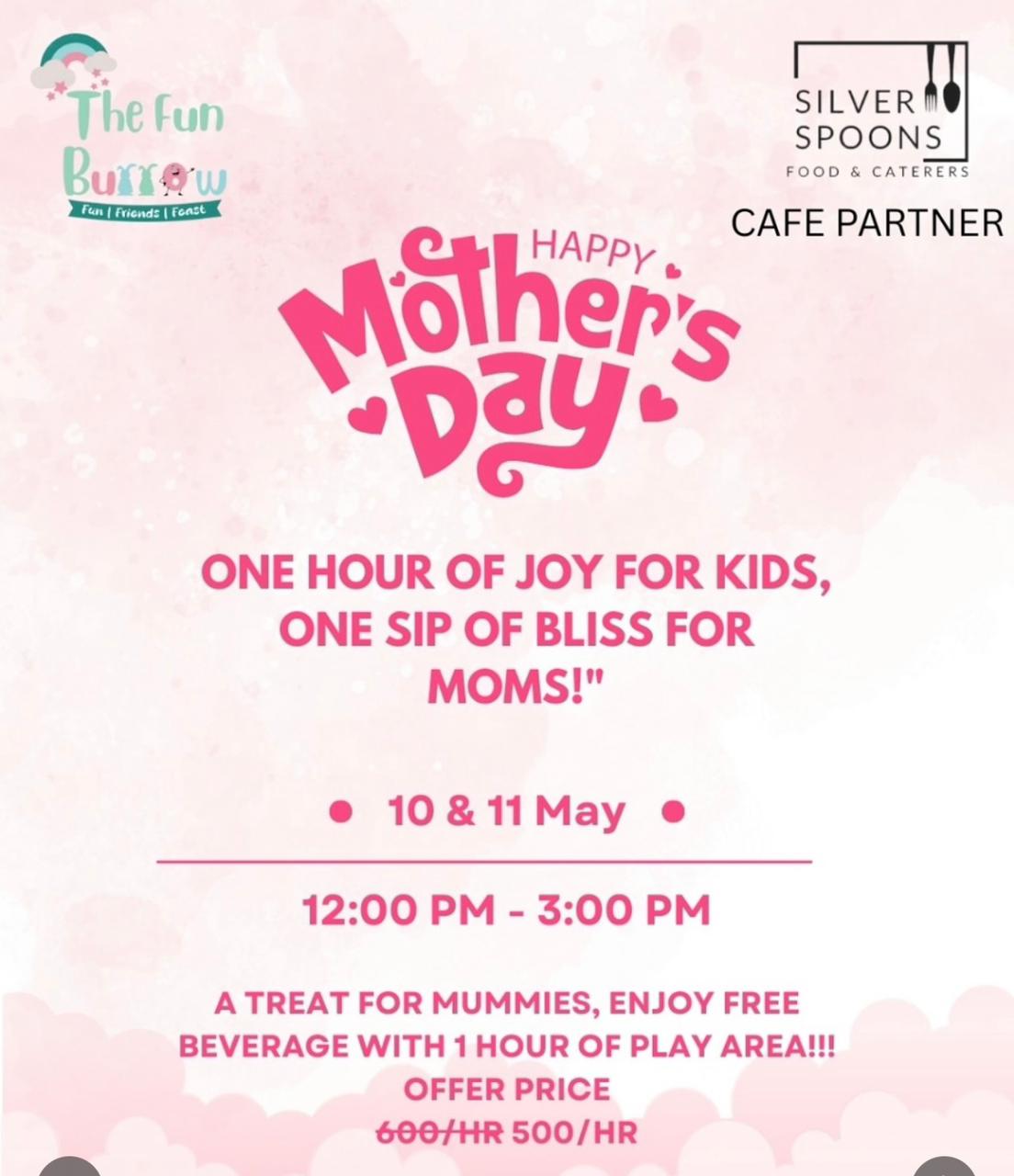 A treat for mommies , enjoy free beverage with 1 hour of play area