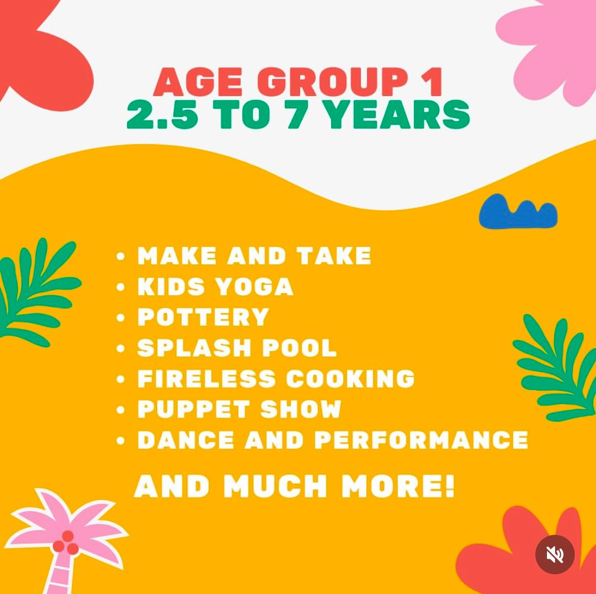 Make and take , kids yoga , splash pool , fireless cooking , puppet show , dance and performance